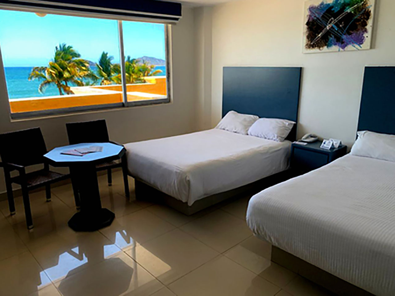 Hotel Hacienda Mazatlán cuenta con 97 cómodas habitaciones, Dobles 2 camas matrimoniales, o Sencillas con una cama King Size, aire acondicionado.